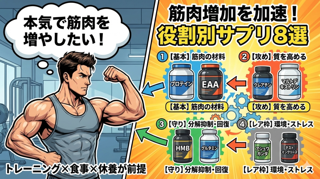 筋肉増加を本気で狙う人のためのサプリ8選 ー王道から珍しい成分までー